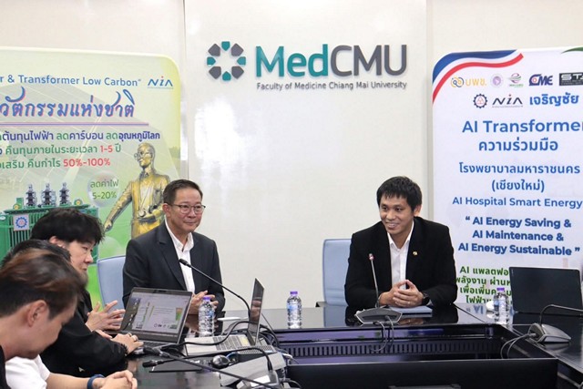 นำโดย ผศ.ดร.นพ.ธวัชชัย มั่นอ่ำ รองคณบดีด้านกายภาพและสิ่งแวดล้อม คุณประจักษ์ กิตติรัตนวิวัฒน์ รองกรรมการผู้จัดการ บริษัท เจริญชัยหม้อแปลงไฟฟ้า จำกัด ได้แก่ บริษัท เจริญชัยเอ็มแอนด์อี จำกัด และ บริษัท เจริญชัยหม้อแปลงไฟฟ้า จำกัด เพื่อร่วมกันพัฒนาและติดตั้งระบบหม้อแปลงไฟฟ้าอัจฉริยะต้นแบบ ณ โรงพยาบาลมหาราชนครเชียงใหม่ ซึ่งจะเป็น โรงพยาบาลแห่งแรกของประเทศไทย ที่บริหารจัดการพลังงานด้วยระบบอัจฉริยะครบวงจร นับเป็นอีกก้าวสำคัญของการขับเคลื่อนเทคโนโลยีด้านพลังงานเพื่อสังคม และเป็นต้นแบบความร่วมมือระหว่างภาครัฐ มหาวิทยาลัย และเอกชน สู่การพัฒนา “Smart Hospital” ที่ยั่งยืนในอนาคต