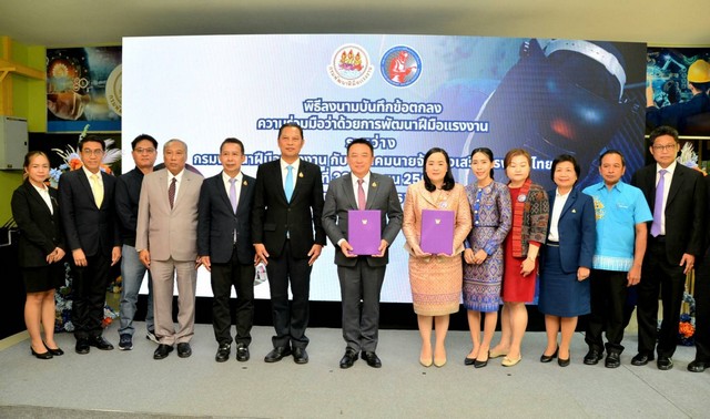 ในครั้งนั้น กรมได้รับความร่วมมืออย่างดียิ่งกับสมาคมนายจ้างส่งเสริมแรงงานไทย ซึ่งเป็นผู้ประสานและได้รับอนุญาตในการจัดหางานจากกรมการจัดหางานและประสานข้อมูลความต้องการแรงงาน เพื่อไปทำงานต่างประเทศ และการลงนามความร่วมมือกับสมาคมนายจ้างส่งเสริมแรงงานไทยในครั้งนี้ มีเป้าหมายเพื่อยกระดับกลไกการทำงานร่วมกัน โดยทั้ง 2 หน่วยงานจะร่วมกันจัดฝึกอบรมหลักสูตรการเชื่อม FCAW 3G GTAW 6G จำนวน 29 คน ณ สถาบันพัฒนาฝีมือแรงงาน 3 ชลบุรี ผู้ผ่านการฝึกอบรมทั้ง 29 คนจะได้เข้าทำงานกับบริษัท HD Hyundai Heavy Industries Co., Ltd. (HHI) ที่ประเทศสาธารณรัฐเกาหลี มีรายได้เฉลี่ยคนละ 70,000 บาทต่อเดือน นอกจากนี้ยังมีแผนและเป้าหมายดำเนินการผลิตช่างเชื่อมสำหรับอุตสาหกรรมอู่ต่อเรือขยายไปยังจังหวัดอื่น ๆ จำนวน 500 คน และในอนาคตจะร่วมกันพัฒนาทักษะกลุ่มช่างก่อสร้าง และขยายตลาดไปยังประเทศอิสราเอล เพื่อสร้างโอกาสการมีงานทำให้แก่กำลังแรงงานต่อไป